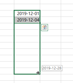 일단 3일이 차이나도록 일자를 입력하여 줍니다. 그런뒤 두개의 셀을 선택하여 자동채우기를 해줍니다.