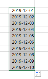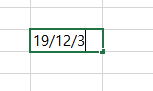 셀에 19/12/3 또는 19-12-3를 입력하면 2019-12-3 로 날짜가 표시됩니다.