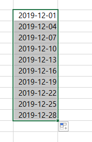 저번 포스팅해서 적었던 자동채우기 내용으로 응용을 해보겠습니다. 순차적이지 않은 날짜를 채워보도록하겠습니다. 3일씩 차이나도록 10칸을 채워봅니다.