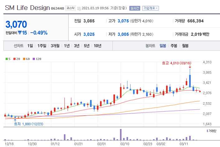 - 동사는 1998년 12월 29일에 설립하였으며, 2002년 5월 30일에 코스닥증권시장에 상장한 주권상장법인으로 명칭은 주식회사 에스엠라이프디자인그룹이라고 함.