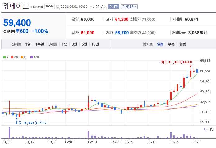 위메이드 (게임 관련주 10종목)