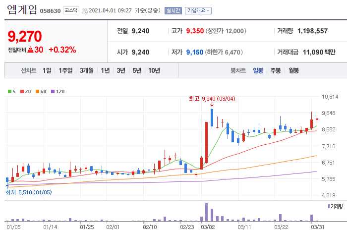 엠게임 (게임 관련주 10종목)