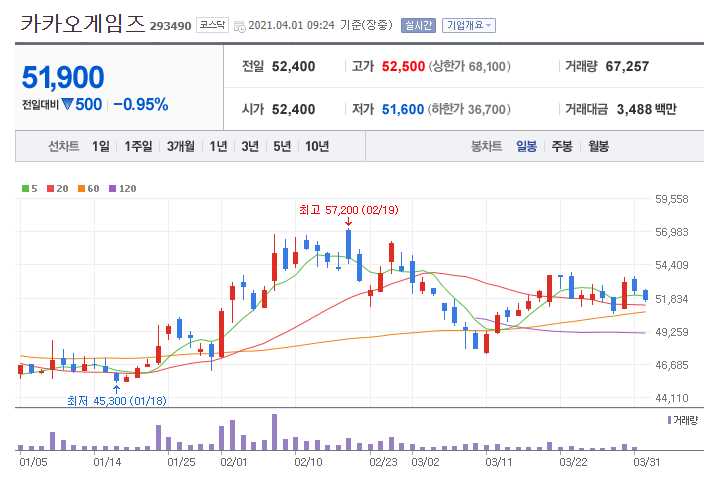 카카오게임즈 (게임 관련주 10종목)