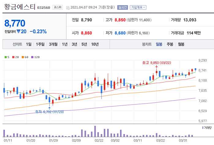 황금에스티 (니켈 관련주 5종목)