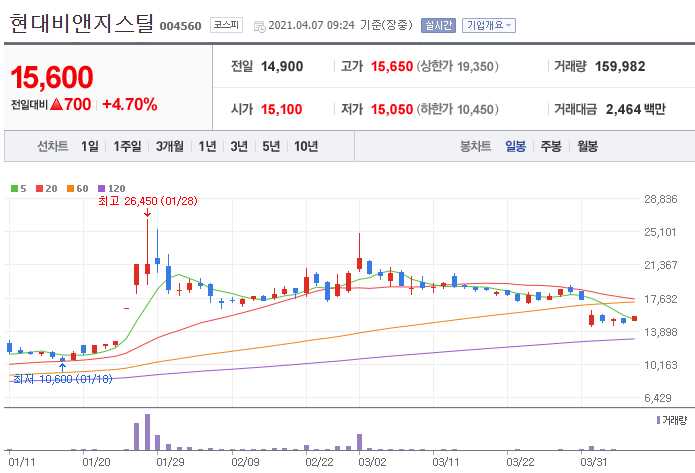 현대비앤지스틸 (니켈 관련주 5종목)