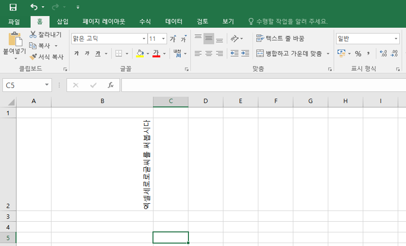 다음과 같이 글씨가 세로로 써지고 글씨가 옆으로 눕혀진걸 확인하실 수 있습니다.