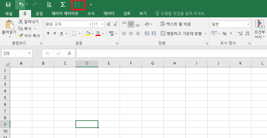 그러면 빠른 실행 도구 모음에 자동합계 아이콘이 추가된걸 확인 하실수 있습니다. 이런식으로 리본에 있는 기능들을 모두 아이콘으로 추가가 가능합니다.
