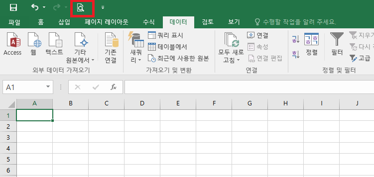 그러면 상단에 아이콘이 추가된 걸 확인하실 수 있습니다. 그리고 아이콘을 클릭하면, 인쇄 미리 보기로 넘어가게 됩니다. 인쇄는 많이 사용하니 이렇게 추가해두시면 단축키나 파일을 눌러서 인쇄 미리보기로 갈 필요가 없어서 편리합니다.