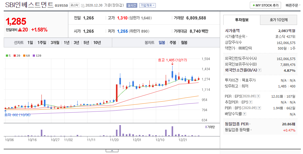 - 가상화폐 거래소인 업비트를 운영하고 있는 두나무의 지분을 가지고 있어서 관련주로 편입되었다.