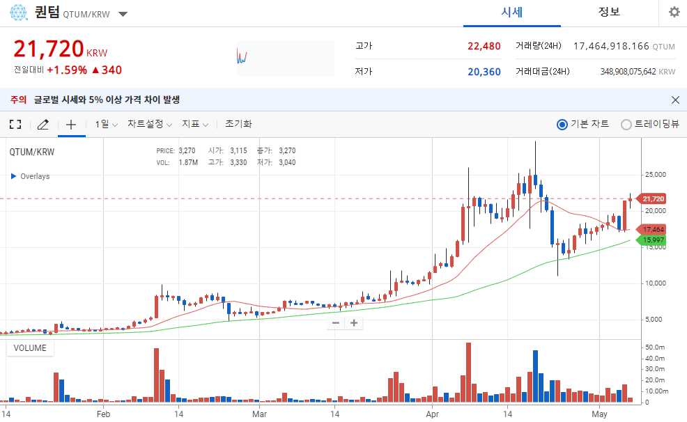 - 최근 들어 메이저급 알트코인들이 하나씩 상승하고 있는 상황에서, 퀀텀은 호재까지 겹쳐서 더 상승할 가능성이 전망되고 있다.
