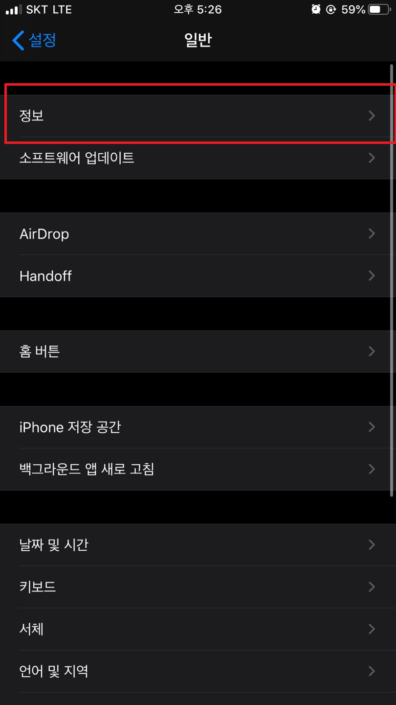 그리고는 [정보]를 클릭합니다.