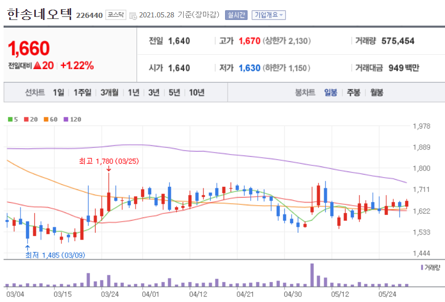 한송네오텍은 전기차와 ESS에 적용될 고품질 습식 분리막 제품을 개발하였으며, 현재 양산을 위한 준비를 하고 있어서 관련주로 부각되었다.