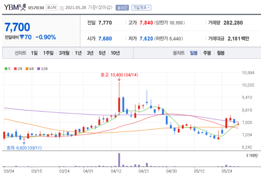 - 동사는 온라인교육/콘텐츠제공업/데이타베이스업 및 교육서비스업을 영위할 목적으로 2000년 6월 7일자로 와이비엠닷컴으로 설립, 2004년 6월 8일 코스닥시장에 주식을 상장함.