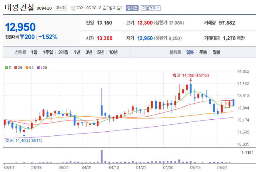 - 동사는 토목건축공사업을 주된 목적으로 1973년 11월20일에 태영개발(주) 라는 상호로 설립되었으며 1989년 유가증권시장에 상장됨. 2020년 토건시공능력평가순위 13위의 종합건설업체로서 토목사업, 건축사업, 주택사업 등을 중심으로 사업을 수행. 동사는 2020년 9월 1일 사업부문의 전문화를 제고하고 핵심사업의 경쟁력을 강화하기 위해 티와이홀딩스와 분할되었음.