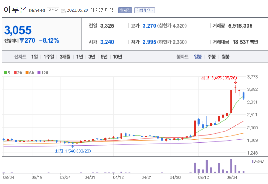 최재형 감사원장이 이루온 이승구 대표와 경기고 및 서울대 동문으로 알려지면서 이루온 주가의 긍적적인 영향을 미치는 것으로 풀이된다.