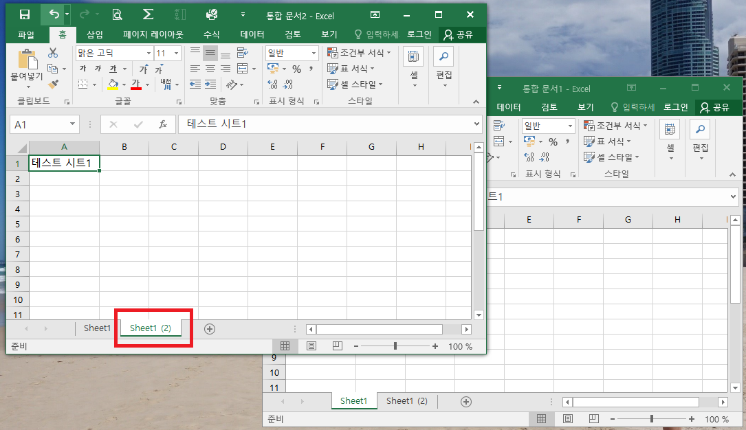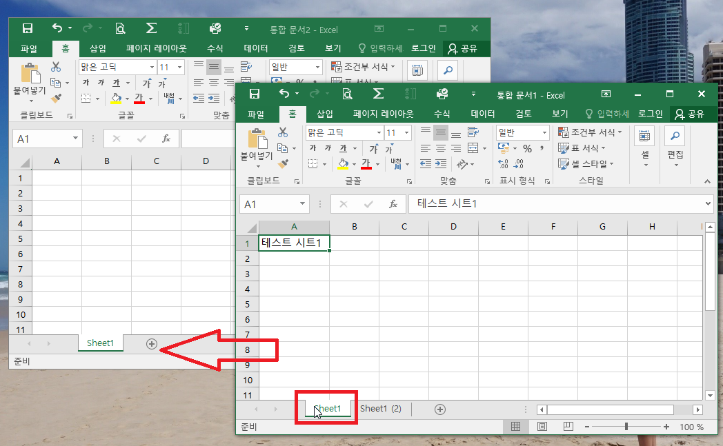 다른 통합 문서인 통합문서2에 시트가 복사된걸 확인하실 수 있습니다.