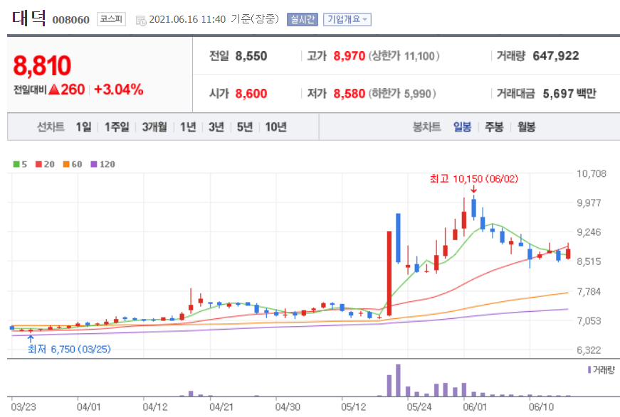 - 2020년 5월 PCB의 제조 및 판매 사업부문인 대덕전자 주식회사와 인적분할 후, 자회사 및 피투자회사의 지분 관리 및 투자를 목적으로 하는 사업을 영위하고 있음.
