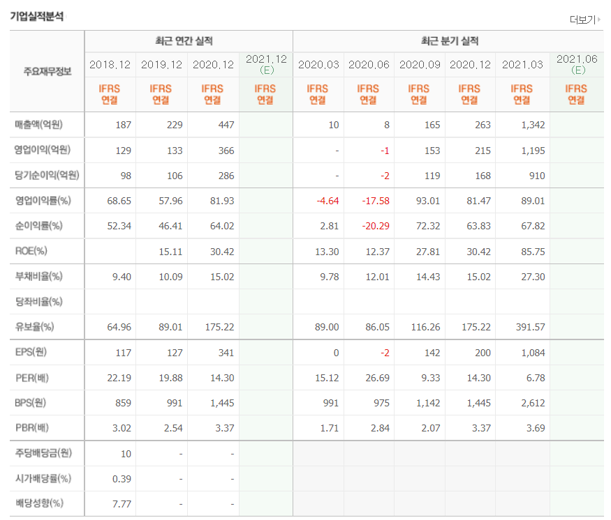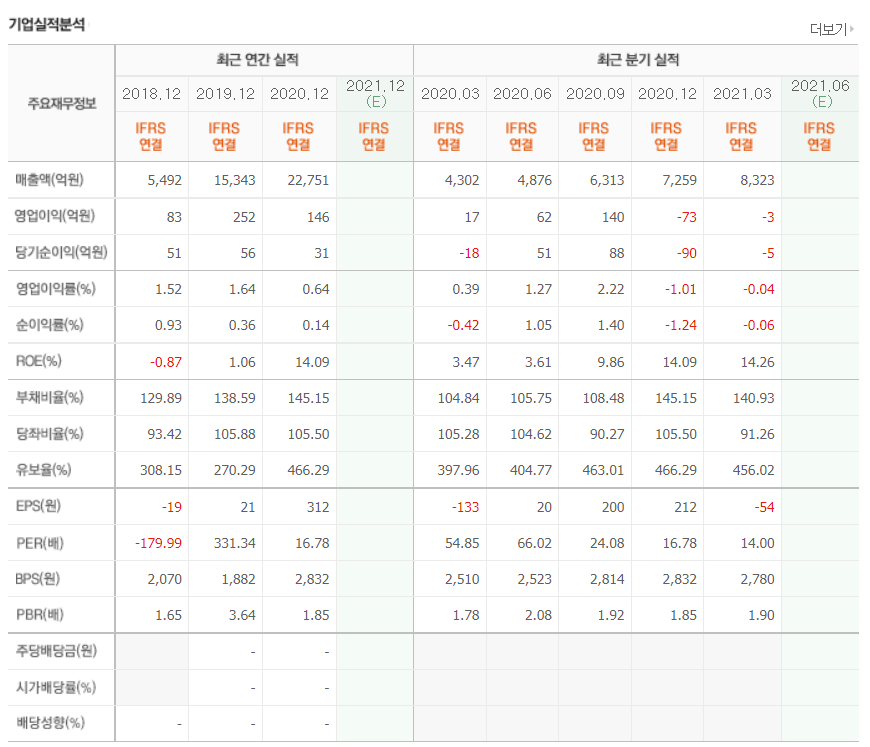 - 2020년 12월 전년동기 대비 연결기준 매출액은 48.3% 증가, 영업이익은 42.2% 감소, 당기순이익은 1736.9% 증가.