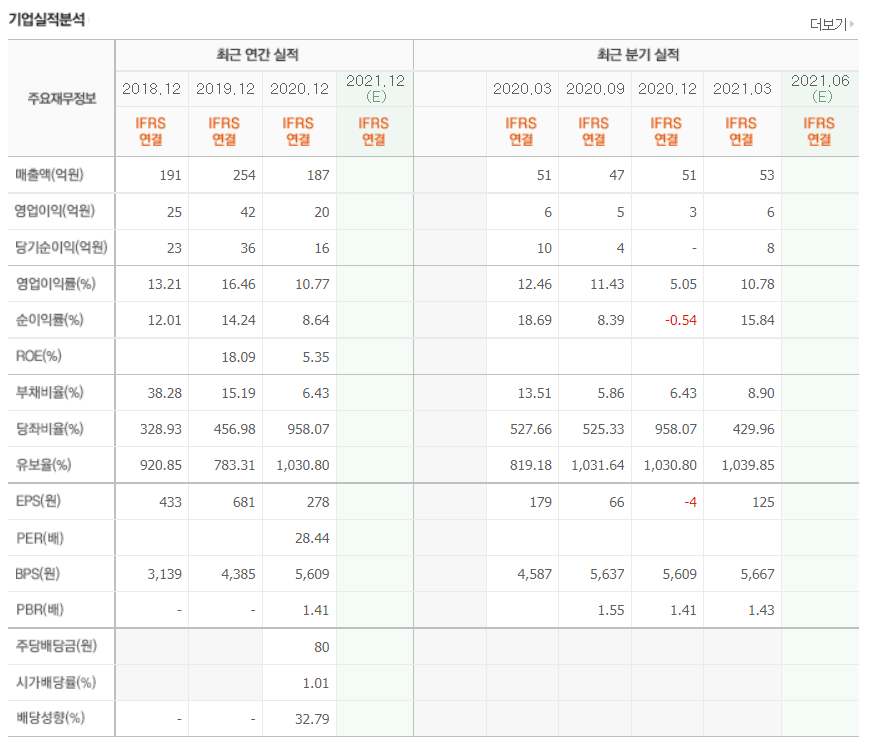 - 2020년 12월 전년동기 대비 별도기준 매출액은 5.5% 감소, 영업이익은 59% 증가, 당기순이익은 43.6% 증가.