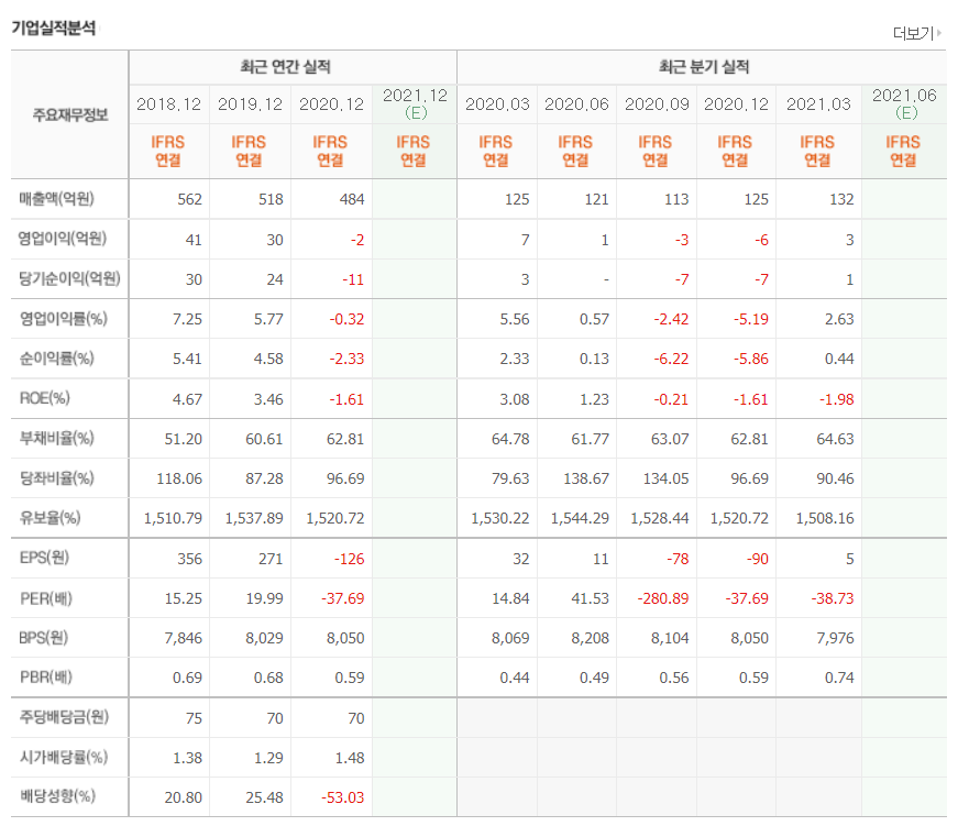 - 2020년 12월 전년동기 대비 연결기준 매출액은 38% 감소, 영업손실은 532.9% 증가, 당기순이익 흑자전환.