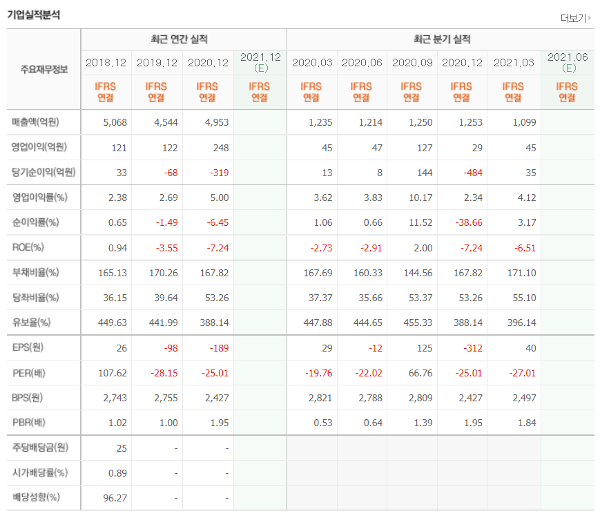 - 2020년 12월 전년동기 대비 연결기준 매출액은 9% 증가, 영업이익은 102.4% 증가, 당기순손실은 적자지속.