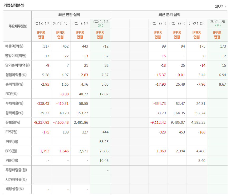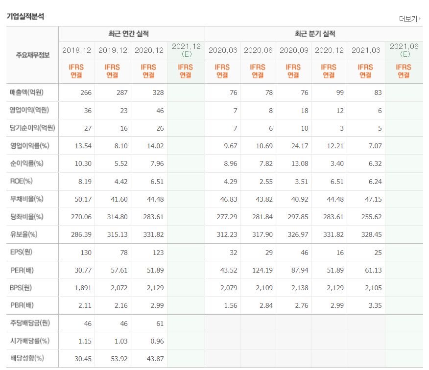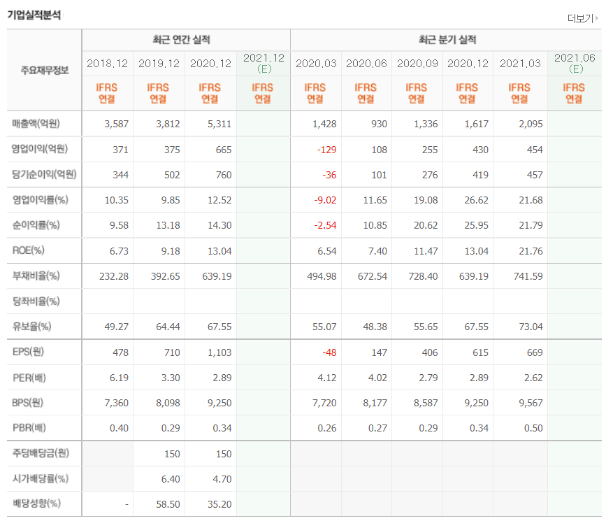 - 2020년 12월 전년동기 대비 별도기준 매출액은 41.3% 증가, 영업이익은 172.8% 증가, 당기순이익은 194.3% 증가.
