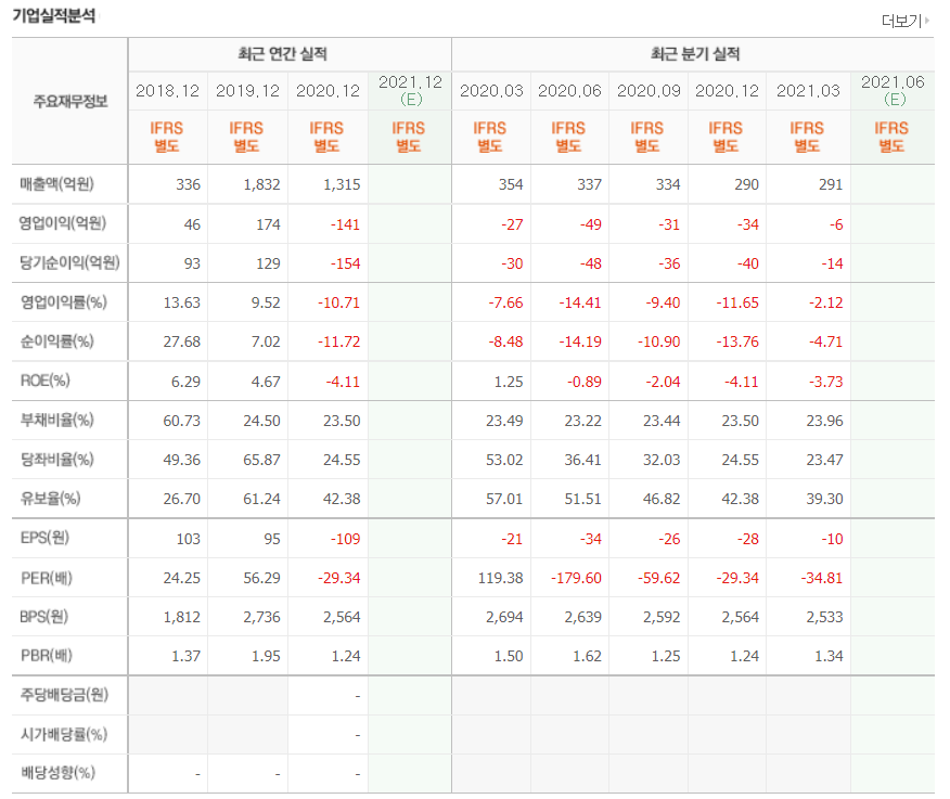 - 2020년 12월 전년동기 대비 별도기준 매출액은 28.2% 감소, 영업이익 적자전환, 당기순이익 적자전환.