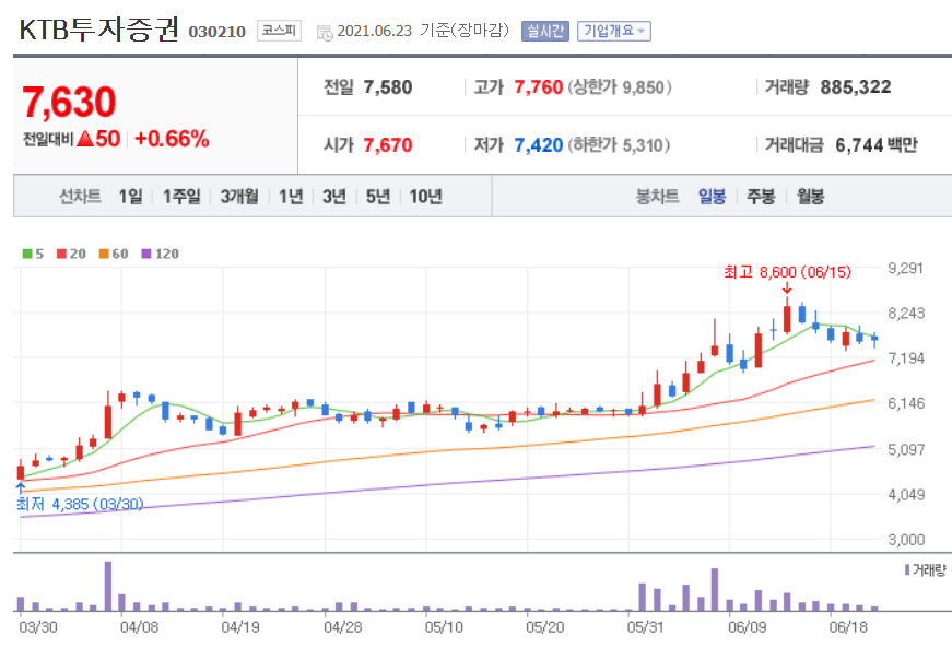 KTB투자증권 (토스 관련주)