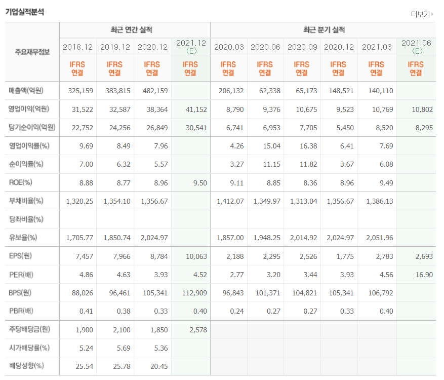 - 2020년 12월 전년대비 연결기준 영업이익 17.7% 증가, 당기순이익 10.3% 증가.