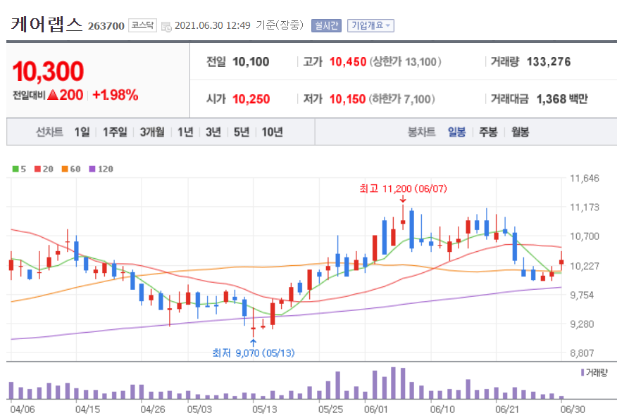 - 동사는 국내 1위의 헬스케어 플랫폼 기업으로 2018년 3월 코스닥시장에 상장함.